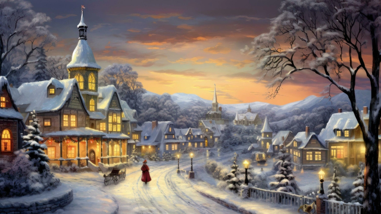 User suggestion: choose high-resolution, professionally retouched images that enhance color vibrancy, refine illustration details, and maintain balanced lighting, ensuring every element—from glowing windows to snowy rooftops—remains crisp, visually engaging, and immersive without overpowering icons or on-screen content.